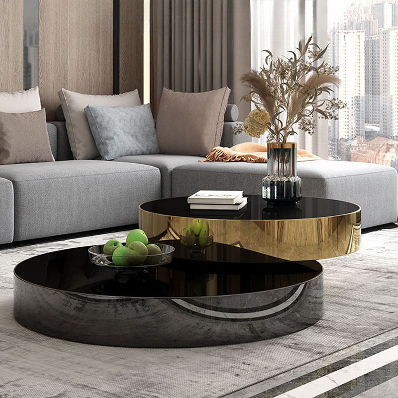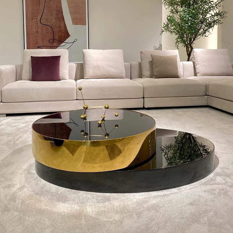 Indulge in luxury with the opulent black and gold Fernando coffee table set. Complete with a 360 degree rotating feature, this exquisite table boasts a high gloss black and gold design, adding a touch of sophistication to any room. Experience elegance and functionality at its finest.