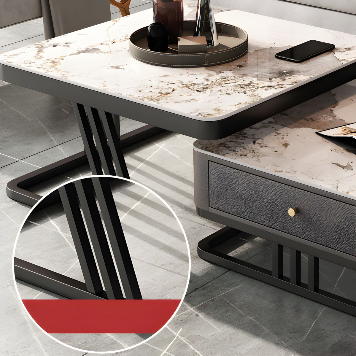 This Table is the Best nesting coffee table in Nigeria. This pair of 2 tables are one of the best selling center tables in Nigeria. They come in a set of 2 piece. They have black, ash and brown frames and marble tops. one design has glass top in one table. The smaller table has a drawer