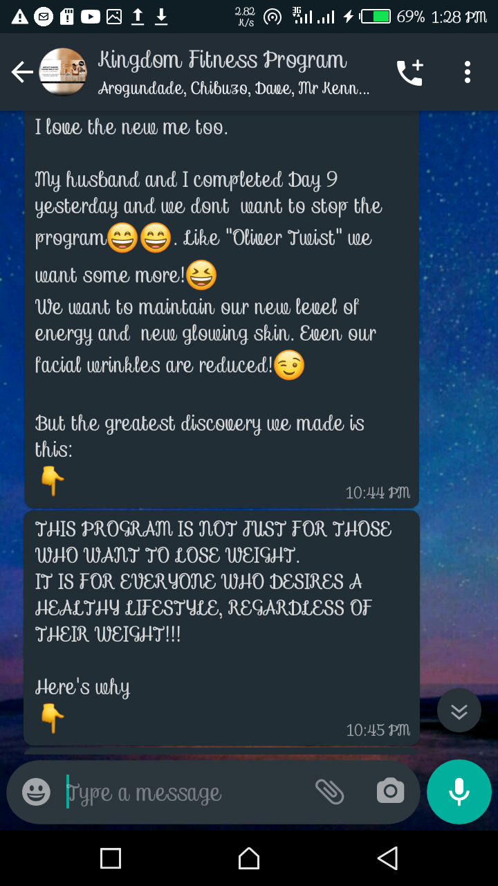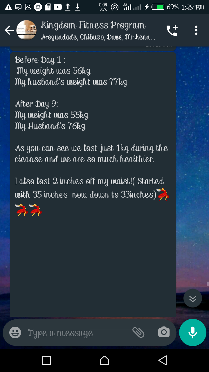I have taken so many types of weight loss supplements and tea, some of them really worked but after a week of not taking my medications, I will start growing fat again, no matter how hard I try, i could not keep my results. Well, not until I gave the Kingdom Fitness program a trial, not only did i loose 12kg in 9days, i also got so many secrets that helped me keep my new shape. Now i don't have to depend on any slim tea or weight loss supplements to remain slim, I am now slim without trying hard