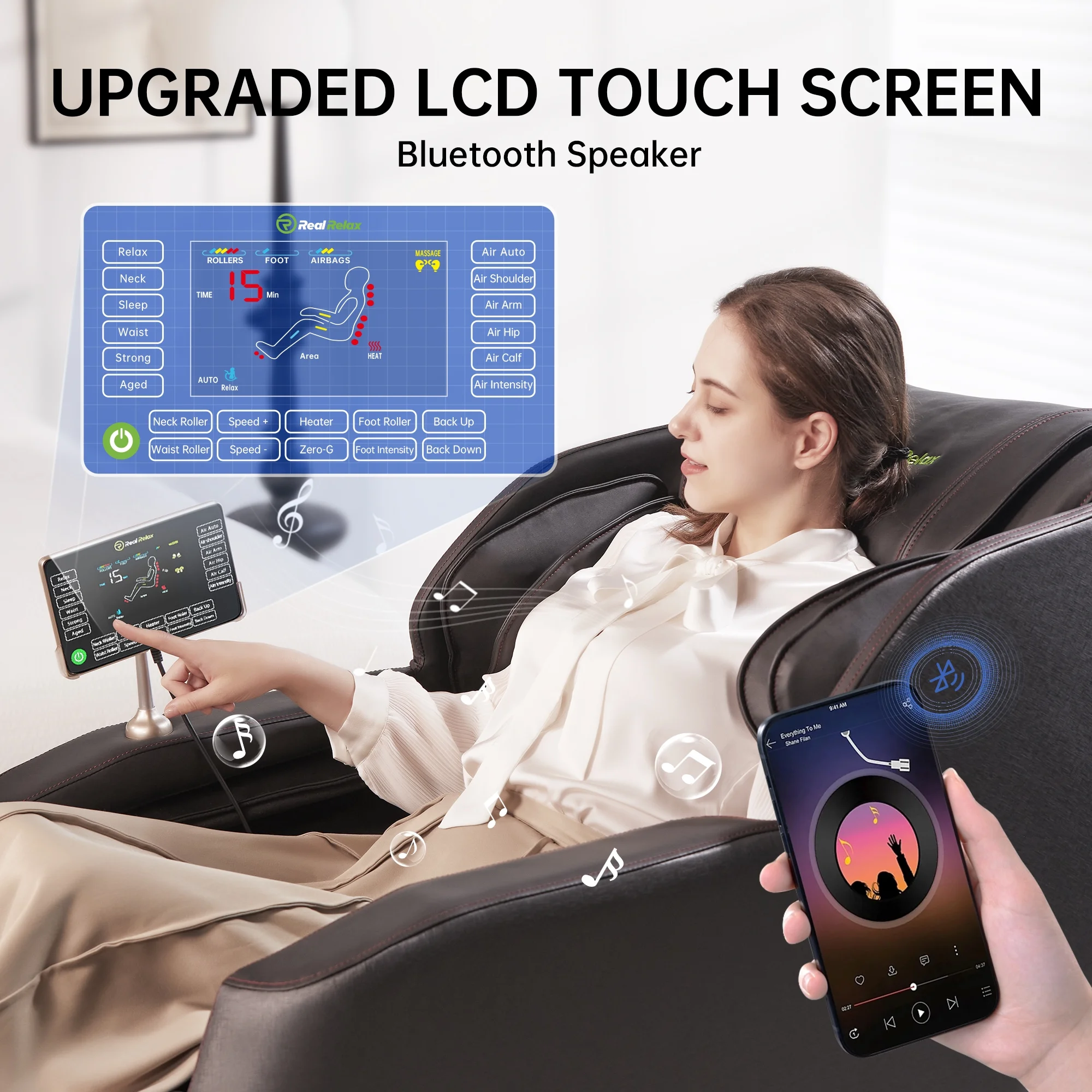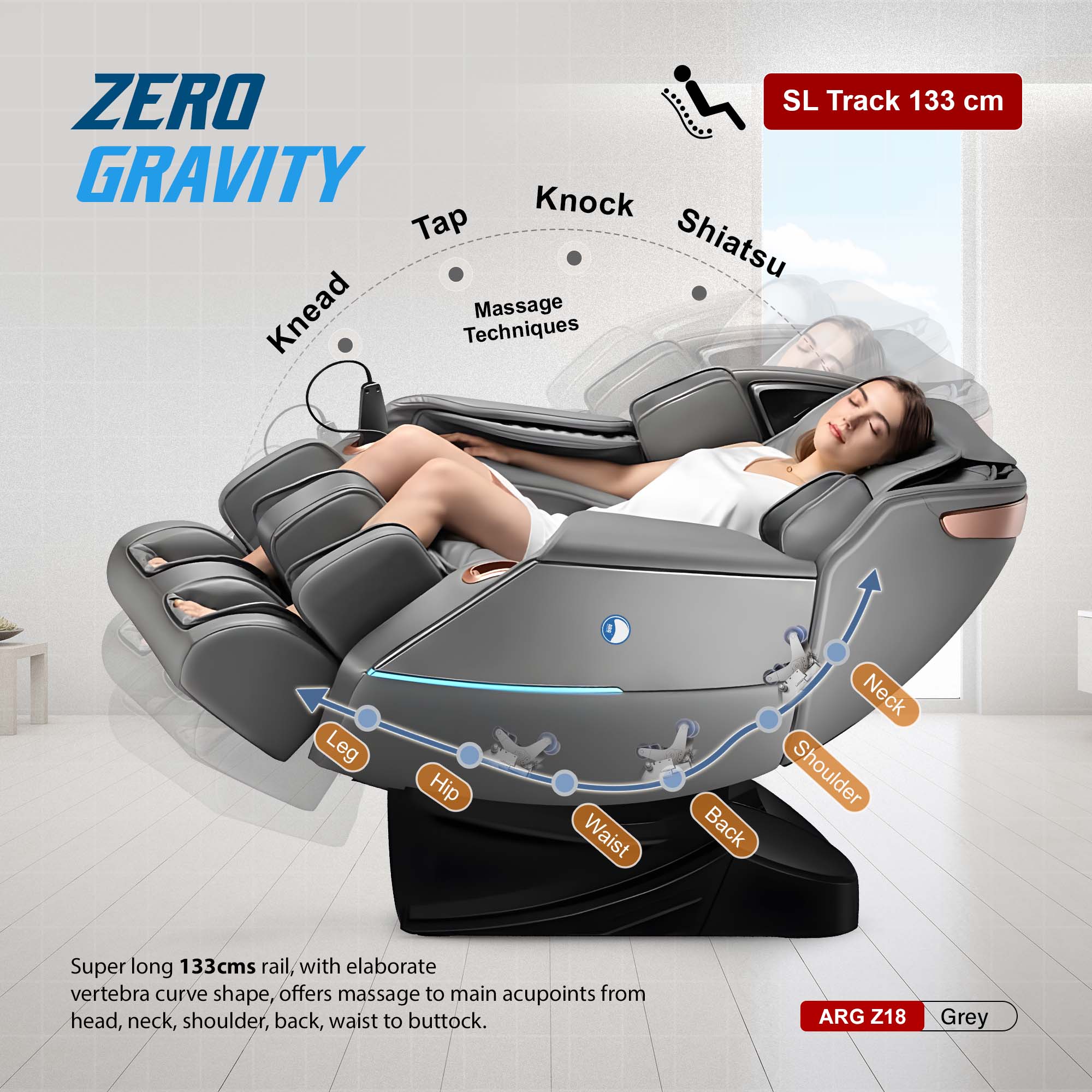With over 6 automatic massaging modes such as; demo, kneading, tapping, stretching, sniper, rolling, shiatsu massage.